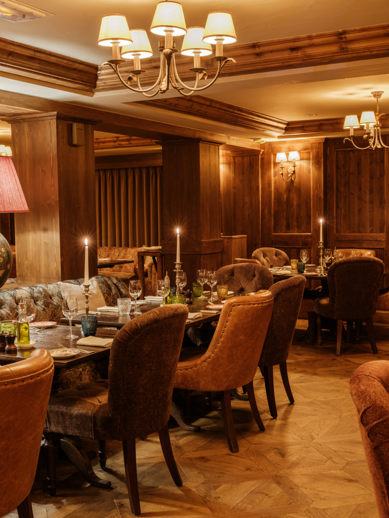 Cucina Angelina reflects Portetta’s relaxed, casual style with a touch of rustic mountain chic. Expect textured, reclaimed wood and stone underfoot, warm-toned leather chairs, oversized banquette sofas with cosy fabrics, and rich, inviting colours. The perfect apres-ski retreat!