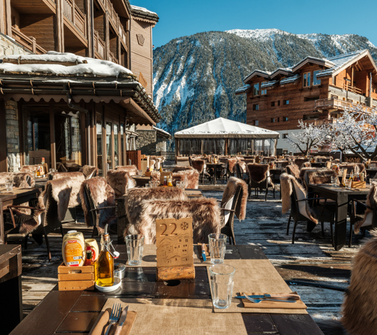 Chill out and soak up the alpine atmosphere at Fire & Ice, Portetta’s outdoor terrace bar, and the largest in Courchevel Moriond. Nestled at the foot of the main piste, it’s the perfect spot to pause between runs or settle in for a leisurely alpine escape. Think log-burning fires, flaming torches, fur-lined snugs, and heated bar seating, all with spectacular mountain views. Whether it’s a quick coffee, a relaxed lunch, or a full après-ski experience, Fire & Ice has it covered.