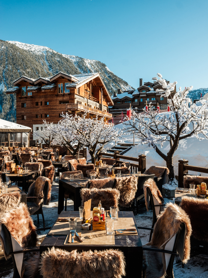 Chill out and soak up the alpine atmosphere at Fire & Ice, Portetta’s outdoor terrace bar, and the largest in Courchevel Moriond. Nestled at the foot of the main piste, it’s the perfect spot to pause between runs or settle in for a leisurely alpine escape. Think log-burning fires, flaming torches, fur-lined snugs, and heated bar seating, all with spectacular mountain views. Whether it’s a quick coffee, a relaxed lunch, or a full après-ski experience, Fire & Ice has it covered.